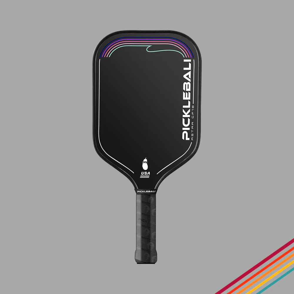 Introducing the PickleBali Astra CF16 – engineered for excellence with a T700 carbon fiber face and a comfortable 5.3-inch handle. Designed for ultimate maneuverability in the transition zone and perfect weight balance during intense rallies, this paddle delivers robust power and precise touch for those crucial resets. Whether you're a power player or one who thrives on finesse, the Astra CF16's blend of power and control makes it your go-to for competitive play. Like the Garuda CF16, the Astra is unique in that it sports an incredibly light weight design, but doesn't sacrifice the pop and put away power. The Astra's large sweet spot makes resets and drops effortless, and the light swing weight makes it incredibly maneuverable, allowing you to surprise your opponents with lightning fast counter attacks and effortless resets.